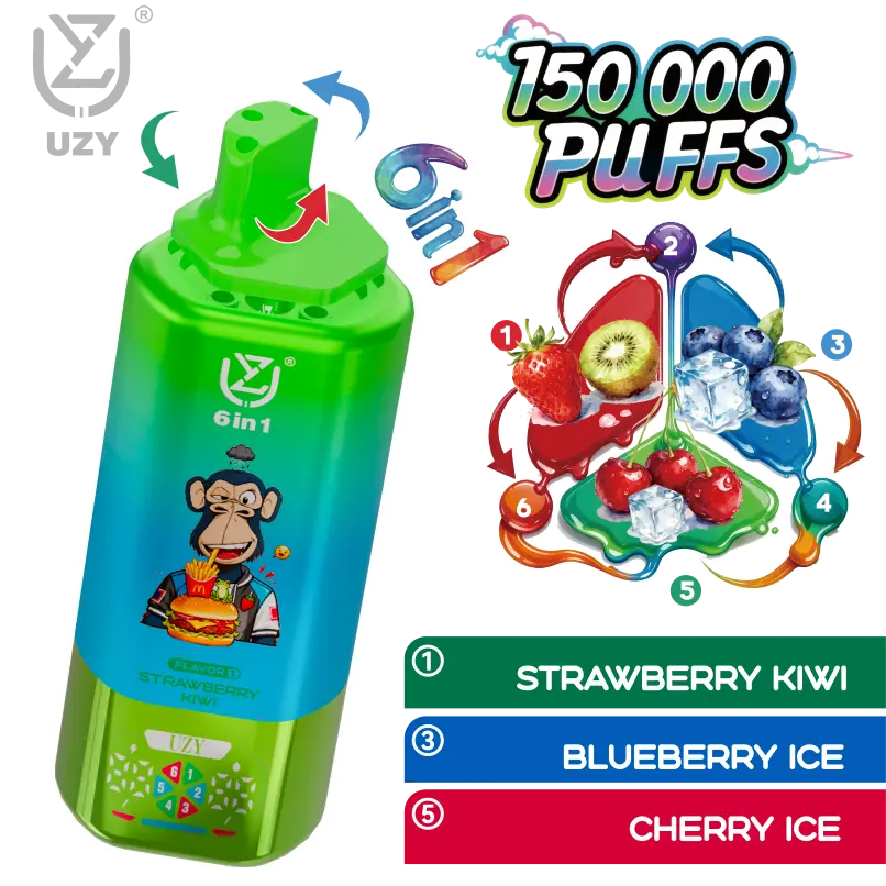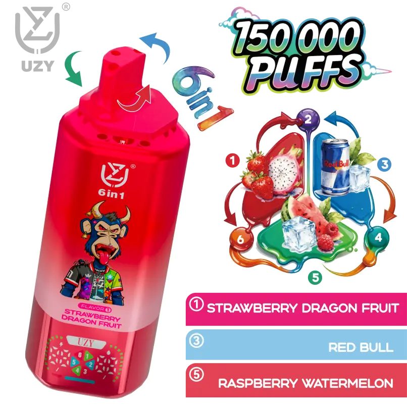 Progettato per una resistenza eccezionale, il UZY 6 in 1 offre una notevole 150.000 soffi. È dotato di una chiara schermo intelligente per un monitoraggio immediato delle impostazioni e dello stato della batteria. Per i clienti europei, offre una spedizione rapida in quanto è disponibile in un magazzino locale. Magazzino UE.