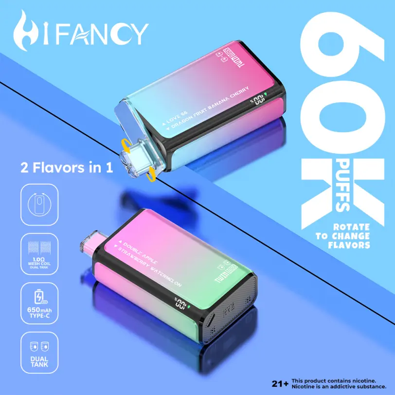 Hifancy 60000 Puffs 60K Twins Max Double Flavors Ecrã inteligente Armazém da UE Loja de Vape