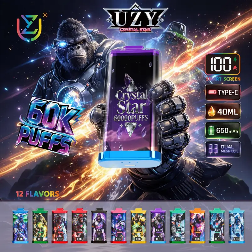 UZY Crystal Star 60K 60000 Puffs Disposable Vape Online Shop Electric Cigarette Wholesale Smart Screen EU warehouse